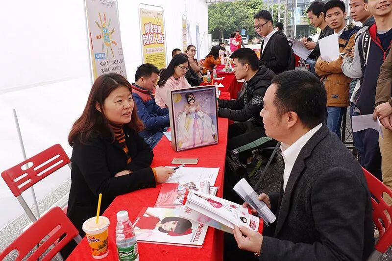招聘会临近尾声,广东蠢材科技有限公司展位依然热度不减,吸引了不少求职者围观